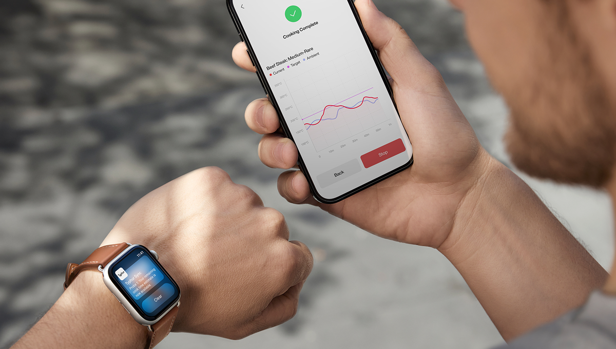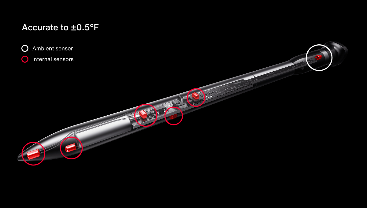 The Device Base can work as a temperature screen, a Probe charging case, and a WiFi & Bluetooth bridge. The temperature estimate algorithm is embedded.